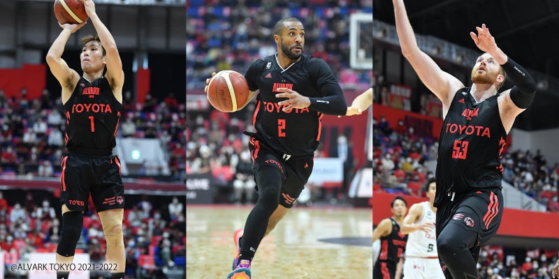 左から順に、小島元基選手…Bodymateヒザ(ヒザ用サポーター)、ジョーダン・テイラー選手…アームスリーブ(腕用コンプレッションスリーブ)、アレックス・カーク選手…アームスリーブ(腕用コンプレッションスリーブ)をご使用いただいています。