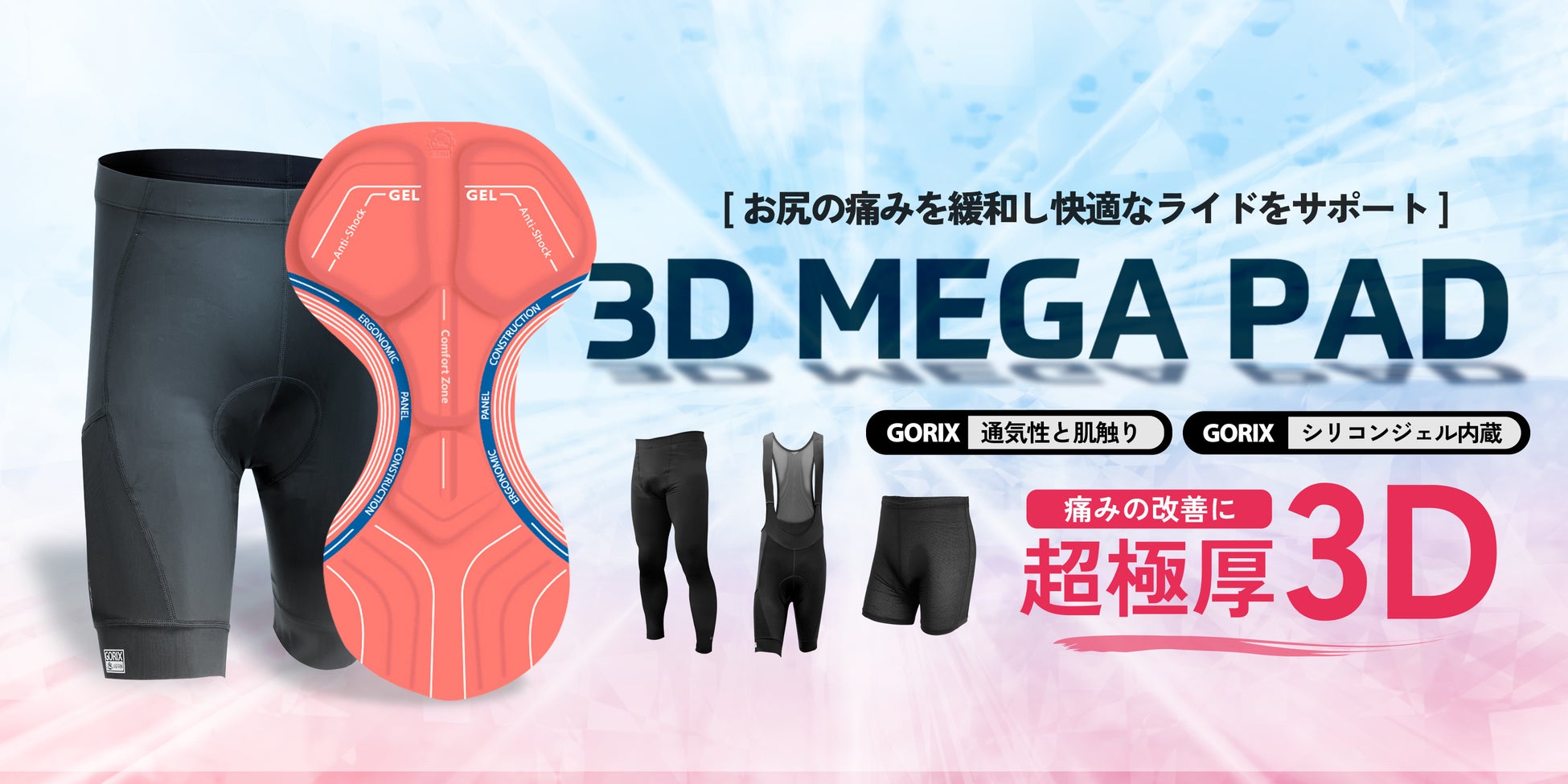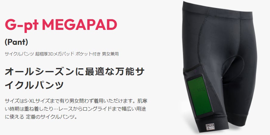 大人気の「超極厚3Dメガパッド」付きのサイクルパンツのの商品群から選べる
