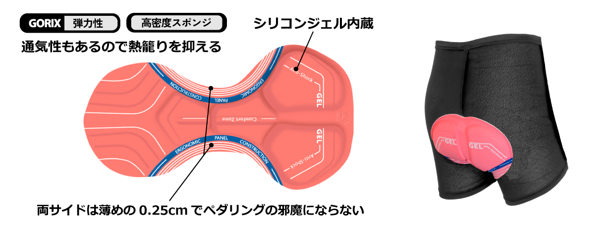 大人気の「超極厚3Dメガパッド」付きのサイクルパンツのの商品群から選べる