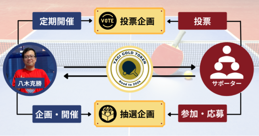 トークン発行による販売売上は、パリパラリンピック出場のための活動資金と、健常者と障がい者が分け隔てなく卓球に触れ合えるイベント開催資金等へ活用させて頂きます。