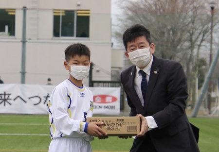 また、入賞チームと全出場選手へ、北海道のお米やジュース、加工品などの国産農畜産物を贈呈し、「ニッポンの食」で子どもたちを激励しました。
