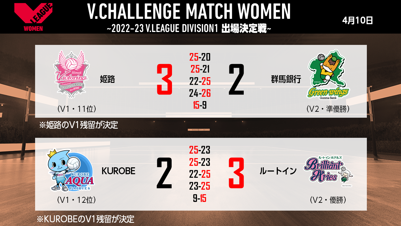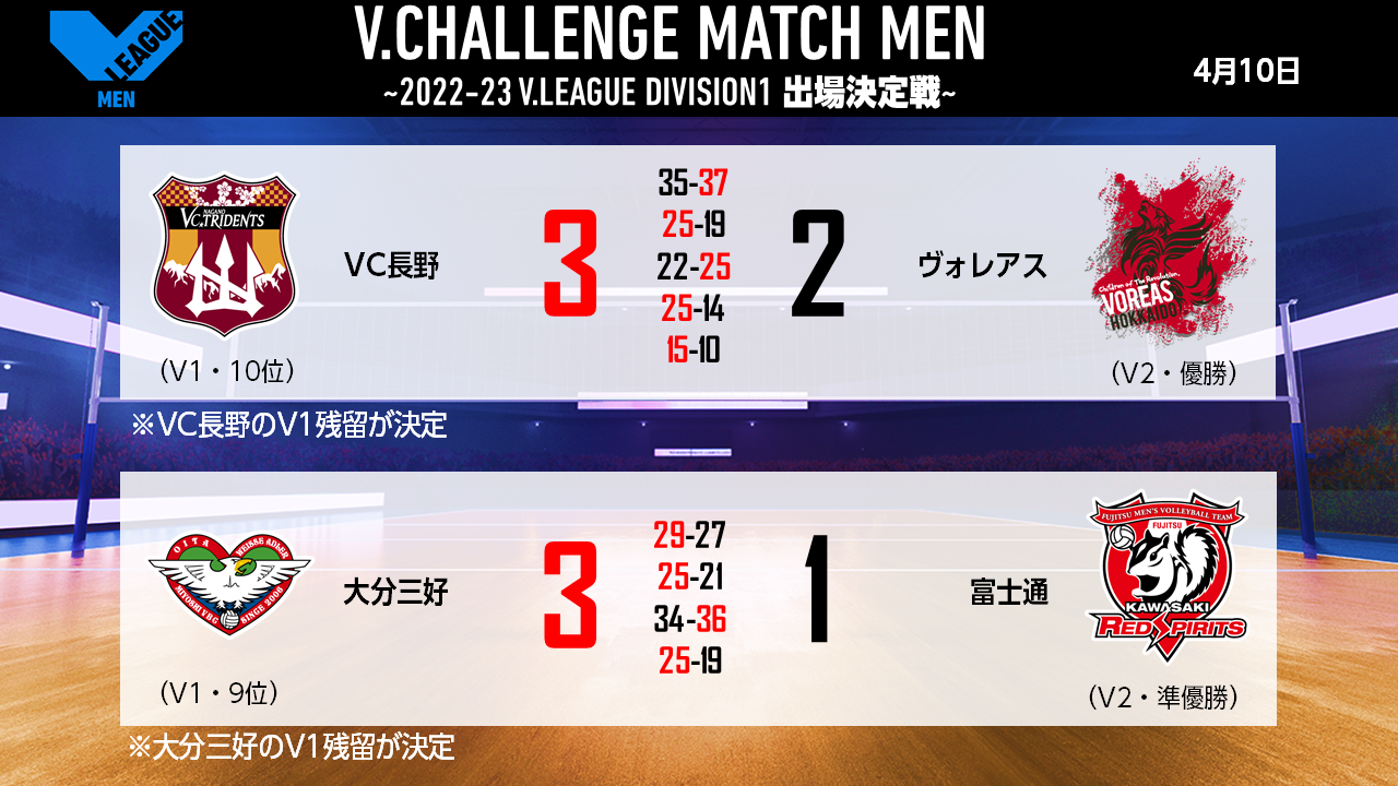 バレーボール国内最高峰リーグ V.LEAGUE【4月10日の試合結果】