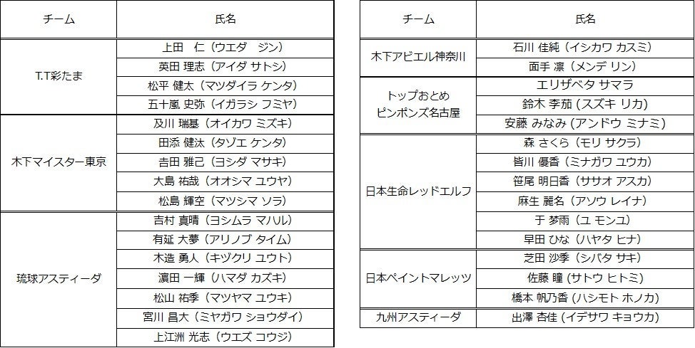 Tリーグでは、2022-2023シーズン 登録完了選手を以下の通りお知らせいたします。