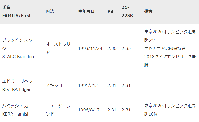 東京2020オリンピック競技大会開催後初の国際大会として、2022年5月8日(日)に国立競技場にて開催する「セイコーゴールデングランプリ陸上2022東京」に予定している海外選手を下記のとおりお知らせいたします。(2022年4月13日現在。)