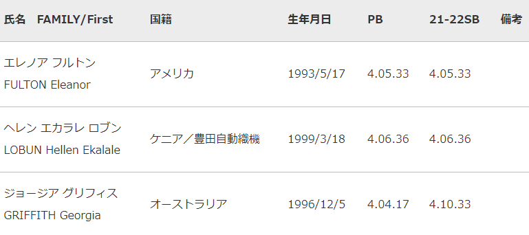 「セイコーゴールデングランプリ陸上2022東京」男子3000m障害物・女子1500m出場選手について