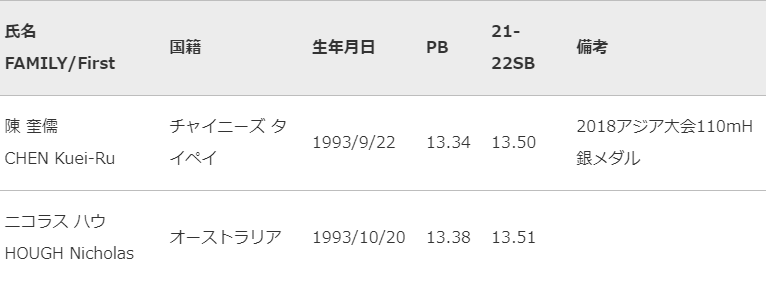 「セイコーゴールデングランプリ陸上2022東京」男子110mH、男子400mH、女子100mH出場選手について