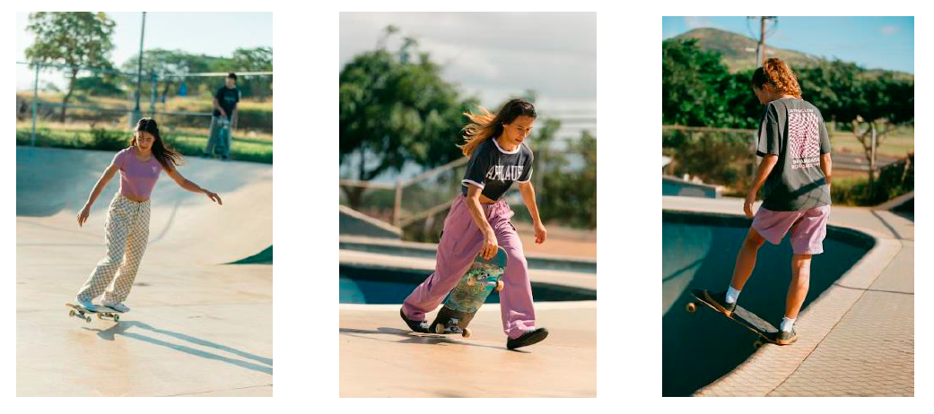 今回のコレクションのイメージビジュアルには、ハワイのローカルスケーターと、ROXYの契約選手である、スノーボードニュージーランド五輪代表 涌嶋弓流(わくしま くうる)を起用。