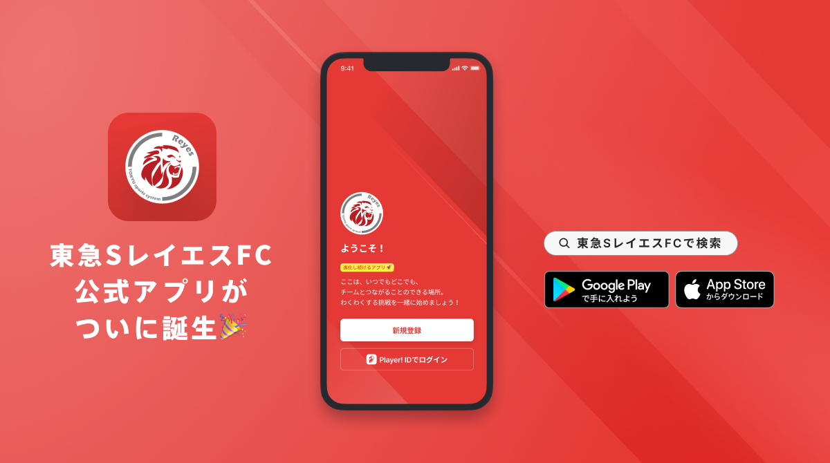 AppStoreもしくはGooglePlayで「東急SレイエスFC」と検索!