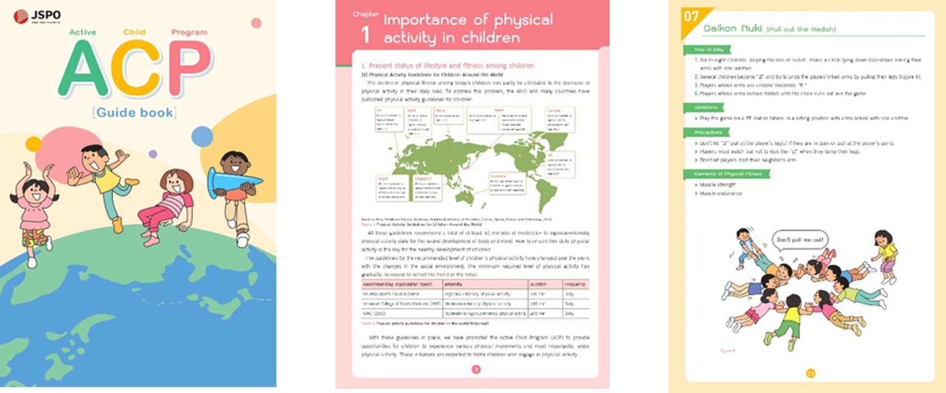 子どもの身体活動量の減少が世界的に問題視される中で、多くの皆さまにJSPO-ACPを活用いただけるよう、英語版JSPO-ACPガイドブック(英語名称:JSPO-ACP Guidebook – Active Child Program -)を作成しました。