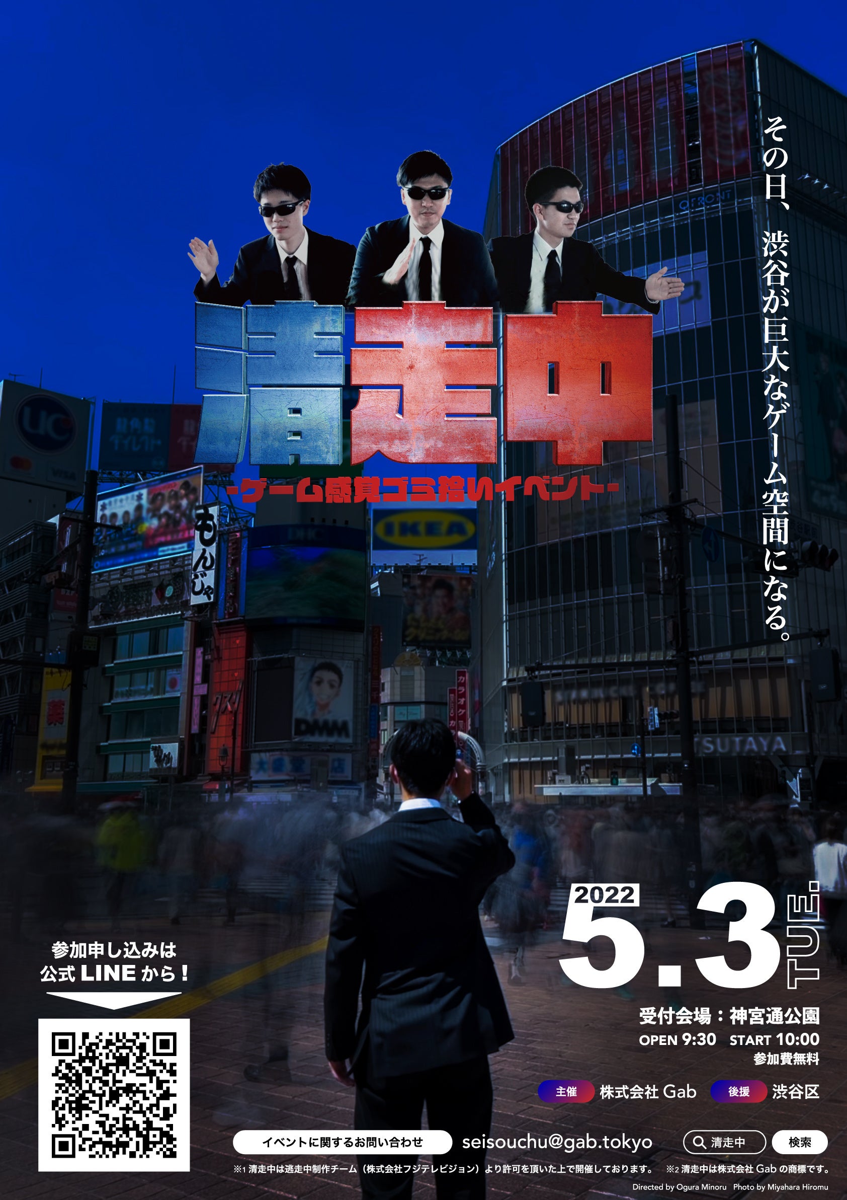 株式会社Gab(本社:東京都渋谷区、代表取締役:山内萌斗)は、人気TV番組「逃走中」と「ゴミ拾い」を融合させたゲーム感覚ゴミ拾いイベント「清走中」を2022年5月3日(ゴミの日)に東京都渋谷区にて開催することをお知らせいたします。