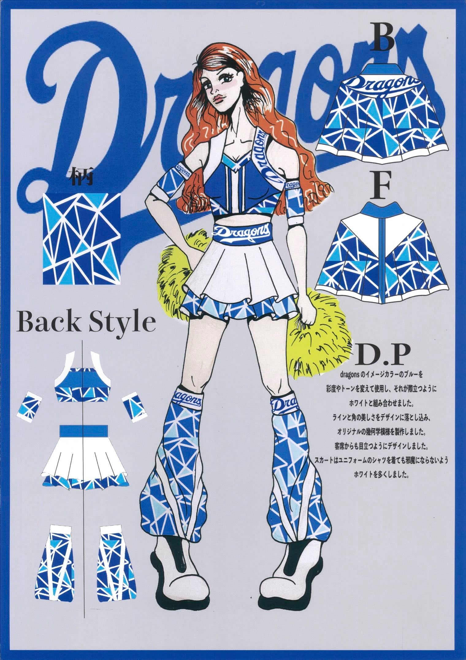 名古屋モード学園ファッションデザイン学科 高度専門士コース/ファッションデザイン学科/ファッション技術学科は、中日ドラゴンズとの産学連携の取組みで同球団のオフィシャルパフォーマンスチーム「チアドランゴンズ2022」の新ユニホームをデザインするコンテストが行われました。