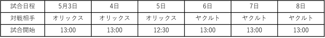 5月3日(火祝)~8日(日)にジャイアンツ球場で開催する公式戦6試合の入場券の先行販売を19日(火)正午から、一般販売を23日(土)正午から開始します。大好評のキッチンカーも充実のラインナップです。期間中には、小さいお子様を中心に大人まで楽しめるゴールデンウィークならではの体験型ファンサービスも開催予定です。詳細は近日中にお知らせします。