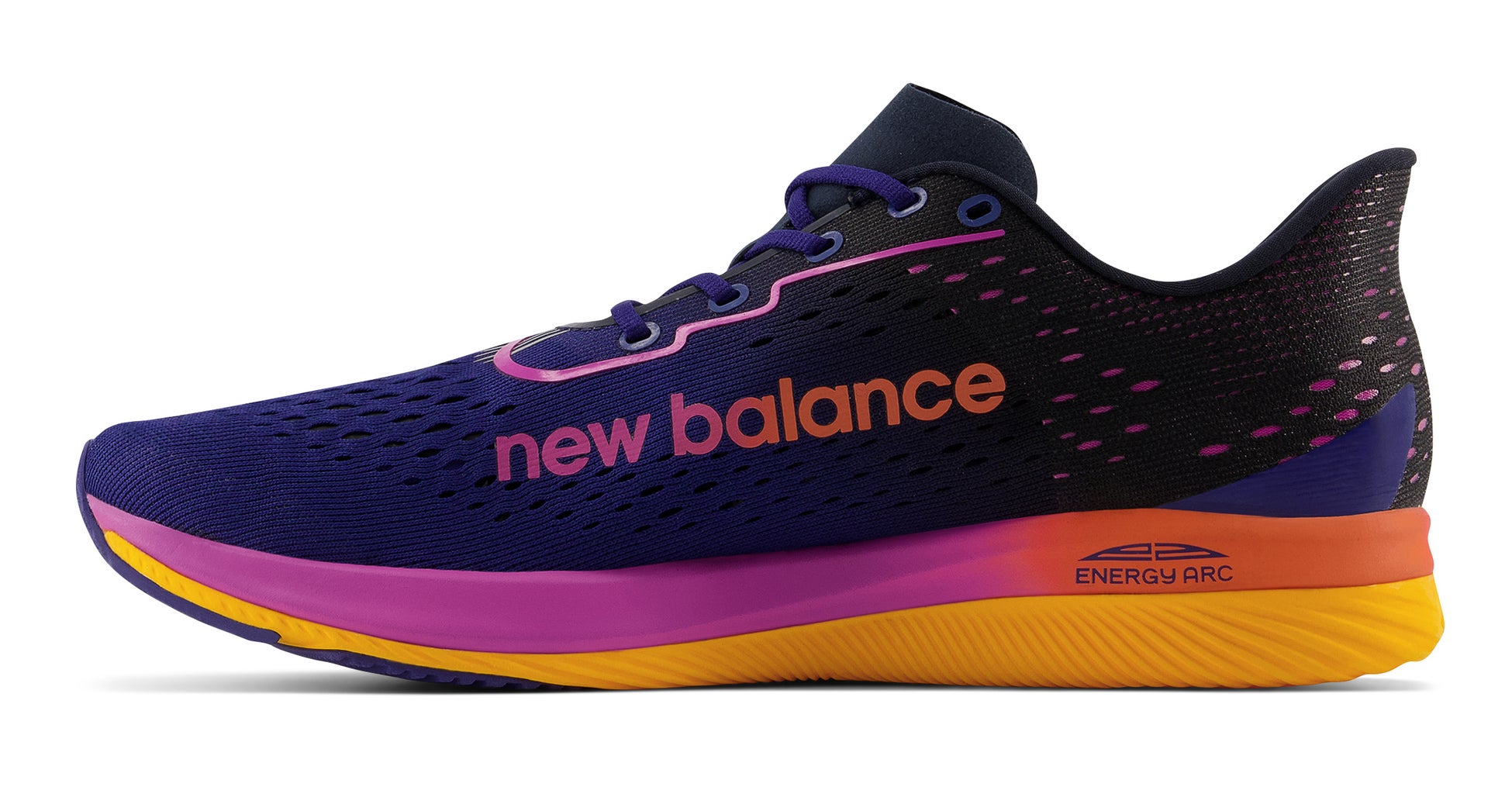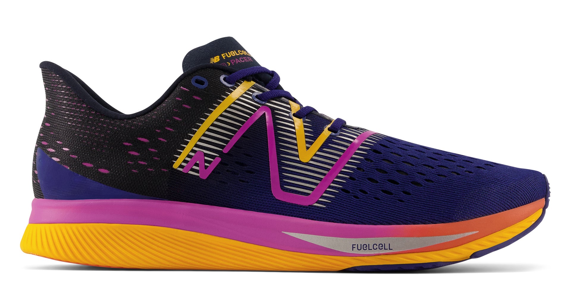 爆発的な推進力を生むスピード重視のレーシングモデル「FuelCell SuperComp Pacer(フューエルセル スーパーコンプ ぺーサー)」。アーク(弓形)状のカーボンファイバープレートと空洞を設けた高反発なFuelCellのシナジーで、エナジーリターンを最大化する最新のENERGY ARC(エナジーアーク)を搭載しました。シャープな薄底シルエットを明るくポジティブに彩り、10kmからハーフ、駅伝に挑むランナーの走りに加速度をつけます。ニューバランス公式オンラインストアストアおよびニューバランスオフィシャルストア、その他一部のニューバランス取り扱い店舗にて販売がスタートしました。
