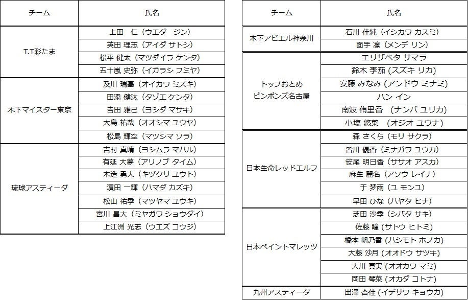 Tリーグでは、2022-2023シーズン 登録完了選手を以下の通りお知らせいたします。