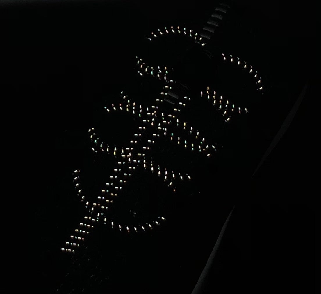 ゴム紐には反射材入り繊維を組み入れており、街灯や車、自転車のライトに対して反射して光ることで、リフレクター機能としてもご使用頂けます。