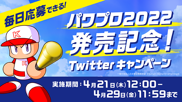 『パワプロ2022』発売を記念して、抽選で毎日100名様(計800名様)にオリジナルデザインのAmazonギフト券500円分が当たる「発売記念Twitterキャンペーン」も実施!この機会にパワプロ・プロスピ公式Twitterアカウントをフォローして、ぜひご参加ください。