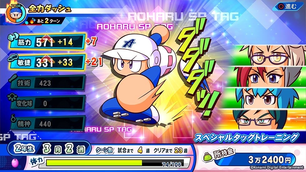 本作の「サクセス」は高校野球が舞台!歴代ライバルキャラとのストーリーを楽しめる「パワフル高校 ライバルズ」編、学園生活・恋・甲子園などの“青春”で選手を育てる「熱血きらめき アオハル学園」編、永遠にキャプテンが受け継がれていく「千将高校 君がキャプテンだ!」編を収録。