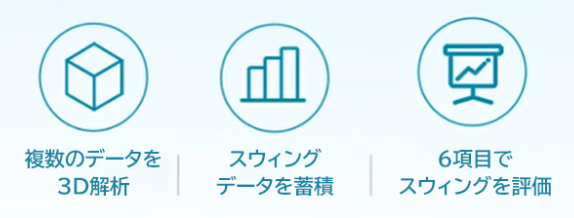 複数のデータを3D解析、スイングデータの蓄積により6項目でスイングを評価するので、ゴルフスキルの向上にも役立ちます。