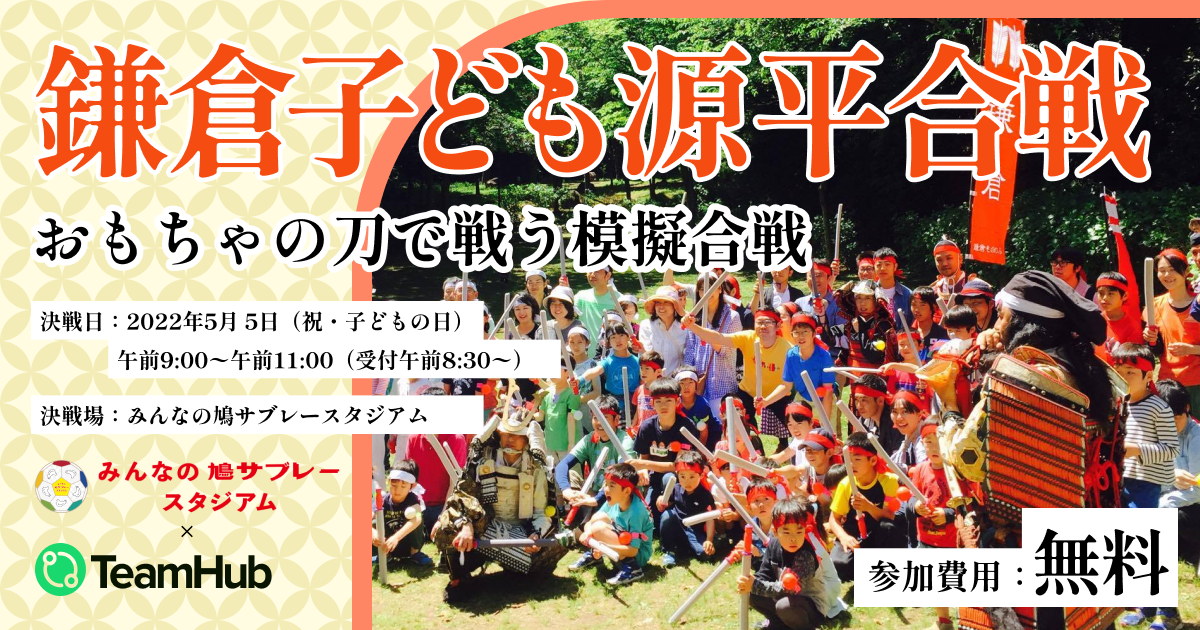 スポーツチームの活動を応援するTeamHubと、みんなの鳩サブレースタジアムがタッグを組み、5月5日(こどもの日)に、スポーツチーム・親子で参加できるイベント「いざ鎌倉!!鎌倉子ども源平合戦」を開催いたします。