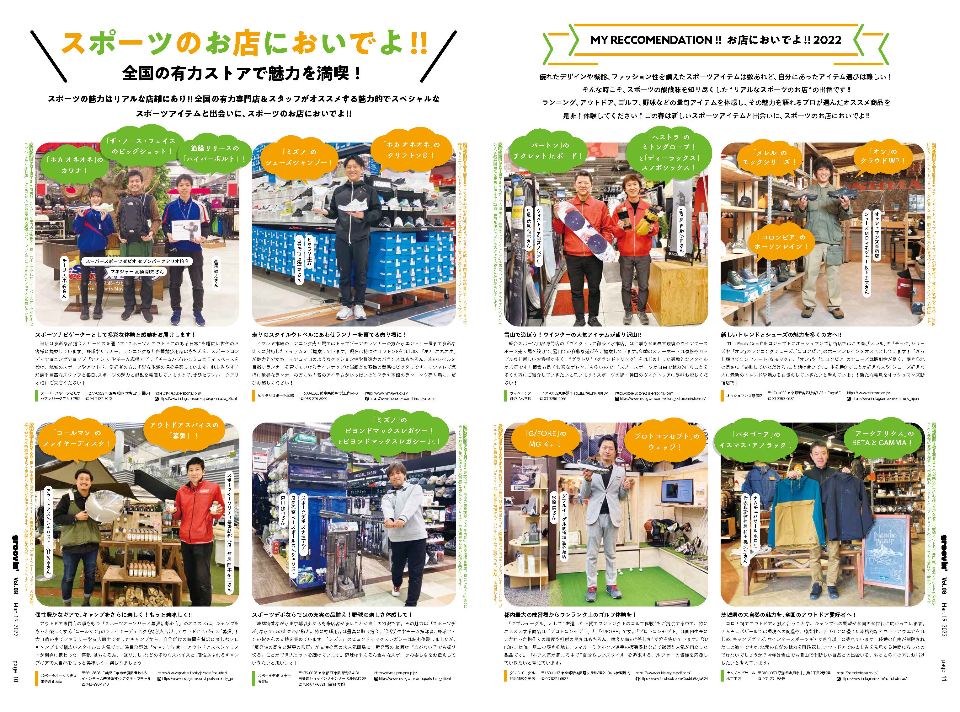 「groovin’」スポーツライフスタイルマガジンは、「スポーツのある暮らし」の魅力をより多くの方にお届けすることを目的にスタートしたタブロイドペーパーです。世界には魅力的なスポーツブランドが数多く存在し、革新的なデザインや技術を背景にした新しいプロダクトが日々生まれています。「groovin’」では全国のスポーツ専門店スタッフが1年のベスト商品を選ぶ「日本スポーツ用品大賞」をはじめ、スポーツを通じた豊かな生活や、各分野で活躍の旬の話題や商品、持続可能性への取り組みを多くの方にお届けしています。