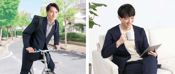 リモートワークはもちろん、カジュアルウェアやワンマイルウェアとしても着用できるスーツです。