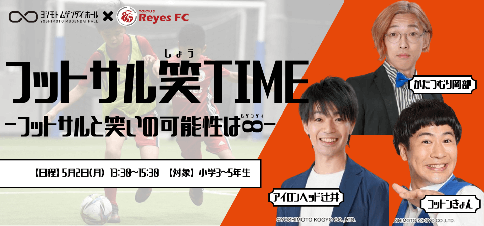 アディダスフットサルパーク渋谷で、ヨシモト∞ホール所属芸人と一緒にフットサルのゲームイベントを行います。