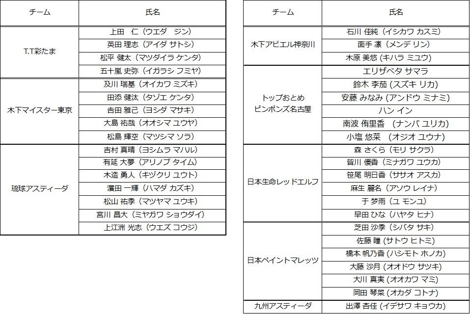 Tリーグでは、2022-2023シーズン 登録完了選手を以下の通りお知らせいたします。