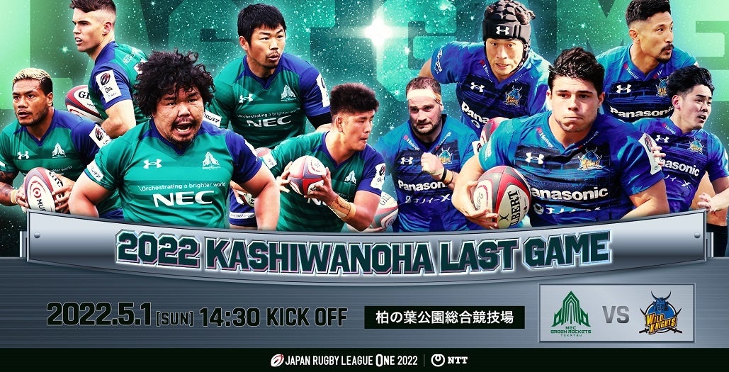 東葛エリアを拠点に活動するラグビーフットボールチームのNECグリーンロケッツ東葛が5月1日(日)に柏の葉公園総合競技場で埼玉パナソニックワイルドナイツを迎え、ホストゲームを開催。「2022 柏の葉 ラストゲーム」をコンセプトに様々なイベントを開催する。