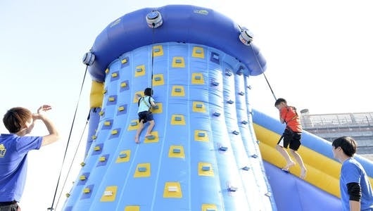 ・会場入口では麗澤大学×グリーンロケッツ東葛のオリジナルクリアファイルを5000名にプレゼント。また、れいたく幼稚園児のキッズチアや選手入場時の花道が実施され、スポーツ専攻科の学生によるラグビー体験会も開催。