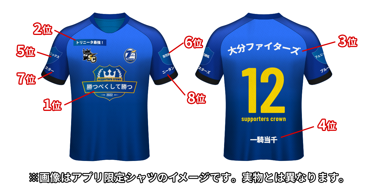本シーズンでは、SCランキング上位8位のグループ名をプリントした「トリニータ公式アプリ限定シャツ」をクランメンバー全員に贈呈させていただく予定です。
