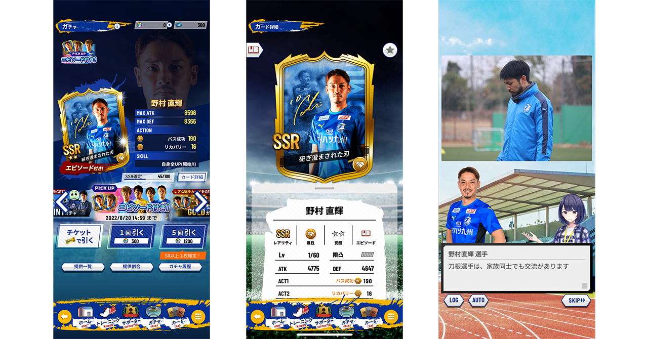 大分トリニータに所属する全選手がカードで登場します(※)。Rカードにはすべてストーリーが付いており、さらに一部のSSRカードには、スペシャルインタビューストーリーが付いています。 2月に行われた新体制発表ストーリーも公開されてますので、ぜひ、アプリ限定のストーリーをお楽しみください。