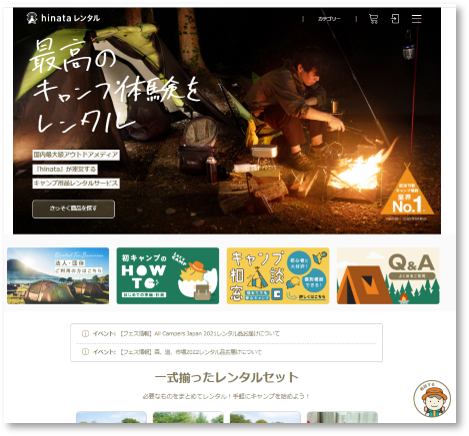 手ぶらでキャンプを楽しめる「hinataレンタル」