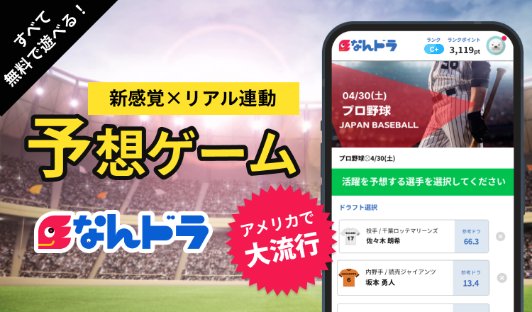 5/2(月)〜5/8(日)に提供するプロ野球、MLB、Bリーグ、NBA、Jリーグなどスポーツの活躍選手予想、映画の興行収入ランキング予想など複数ジャンルのドラフトの合計スコアで競います!完全無料ですので奮ってご参加下さい!