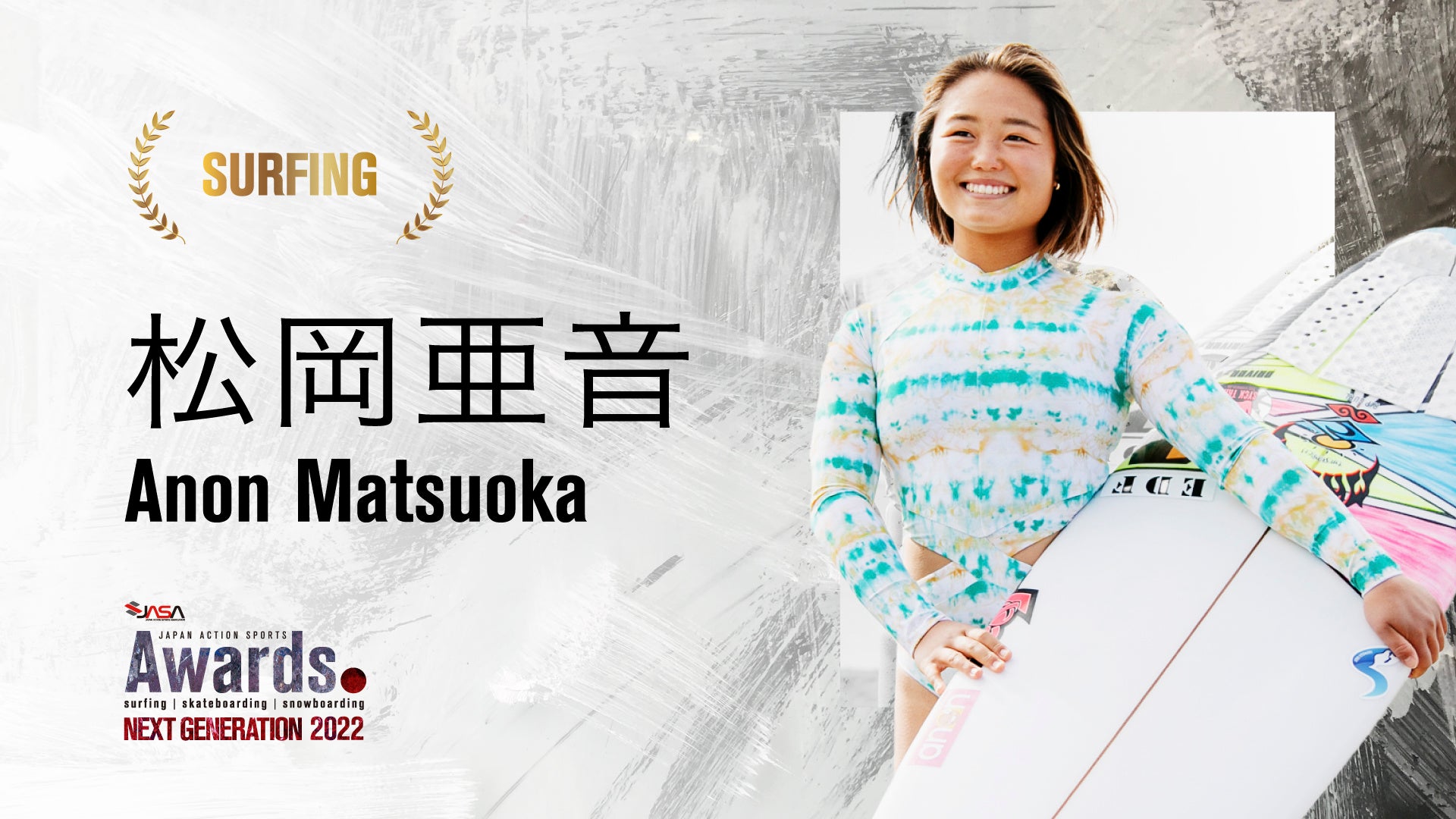 本アワードは、メジャースポーツのように認知を拡大すること、さらには子供たちが憧れるようなヒーローやスターを世間一般に知ってもらうきっかけを与えるために開催していましたが、「TOKYO2020」におけるサーフィン、スケートボード競技、「北京2022」におけるスノーボード競技での日本人選手のめざましい活躍により、各種メディアで連日取り上げられ、注目を集めています。そんな現状を踏まえ、今回からアクションスポーツ界の次世代を担うネクストジェネレーションにスポットライトを当て新しいコンセプトで生まれ変わり、サーフィン、スケートボード、スノーボードの3つのカテゴリーから男女各1名を受賞者として選出しました。