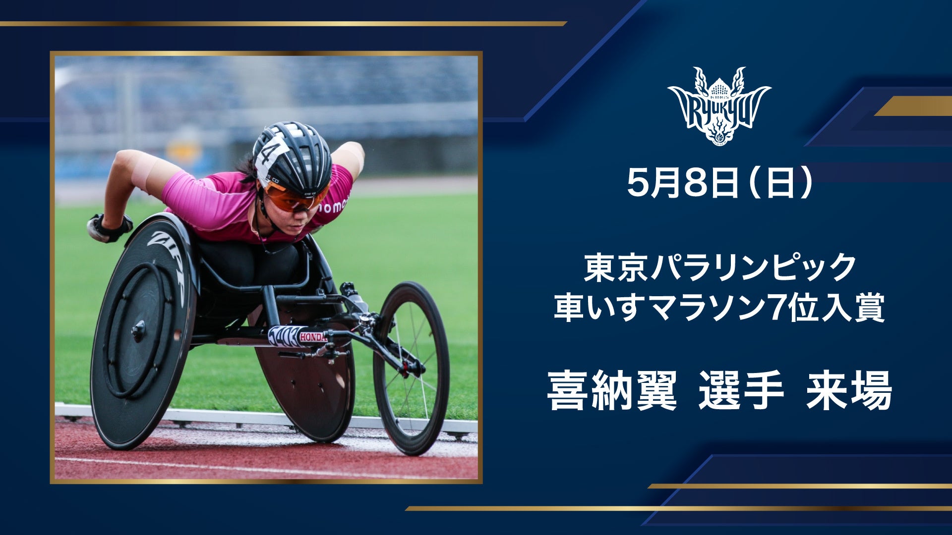 東京パラリンピック車いすマラソンで7位入賞を果たした喜納翼選手が来場。中高時代には沖縄県代表に選出されるほどバスケットボールにも縁の深い喜納選手より、チャンピオンシップの戦いを目前に控えたキングス、そしてキングスファンの皆さんに激励をいただきます。お見逃しなく!