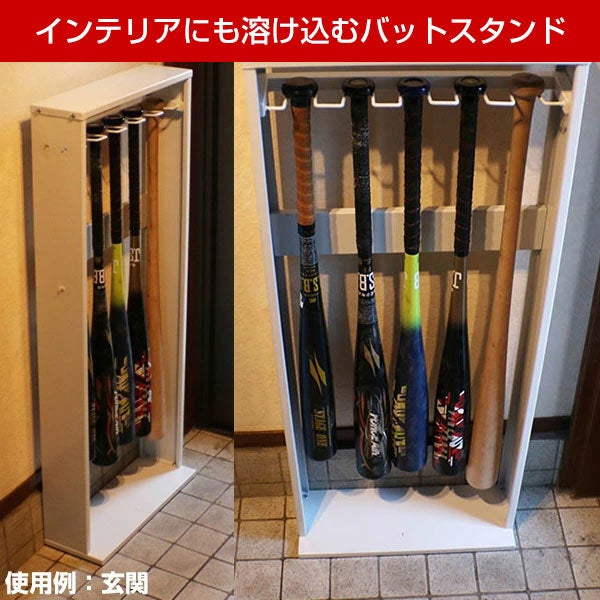 お手持ちのバットがスッキリ収納出来る他、省スペースで使用できるので玄関などにおいてオシャレなインテリアとしても使用できます。