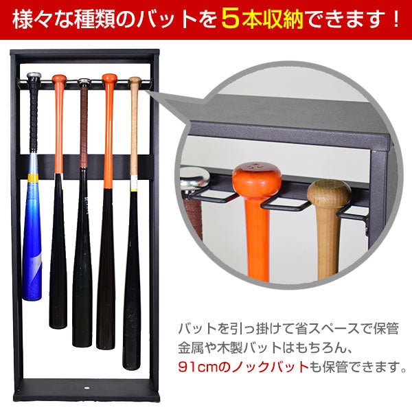様々の種類のバットを最大5本まで収納出来るこちらのバットスタンド。
