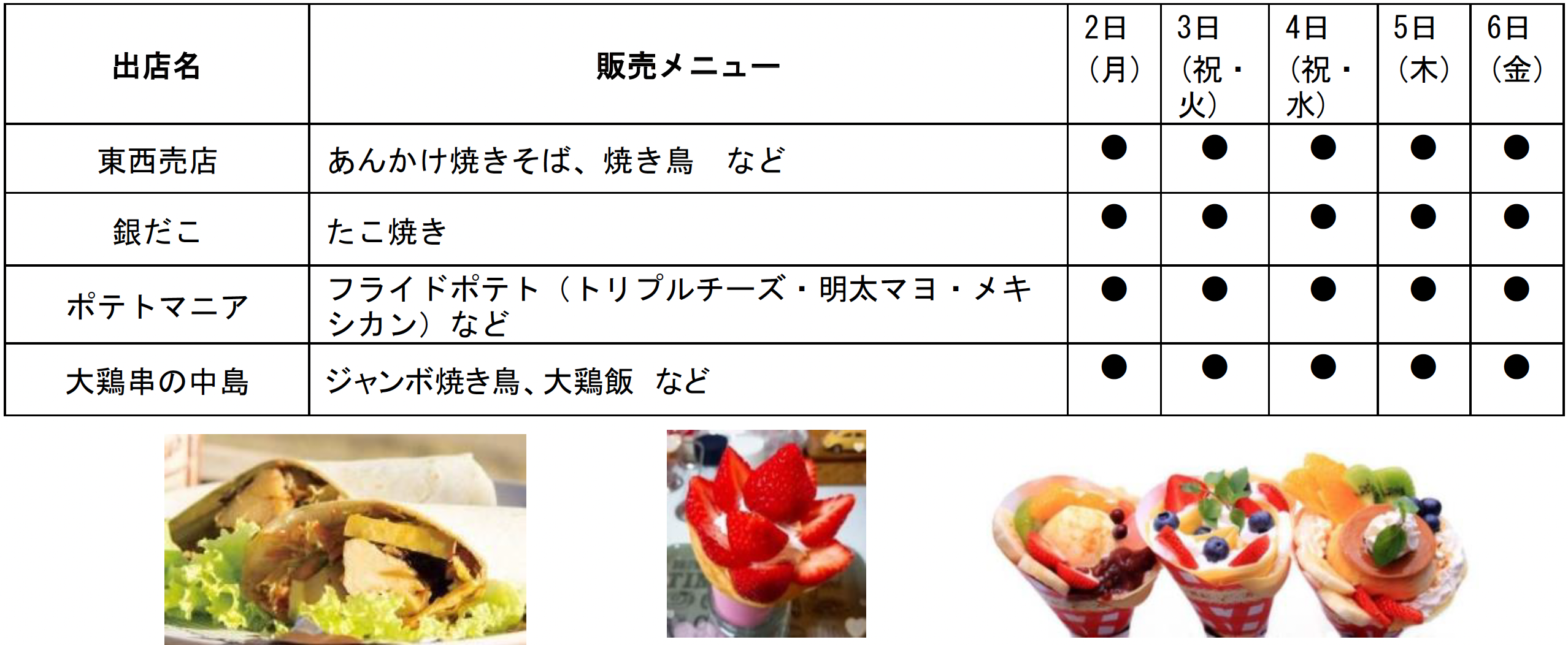 ベビーカステラ・いか焼き・牛ステーキの屋台が登場!