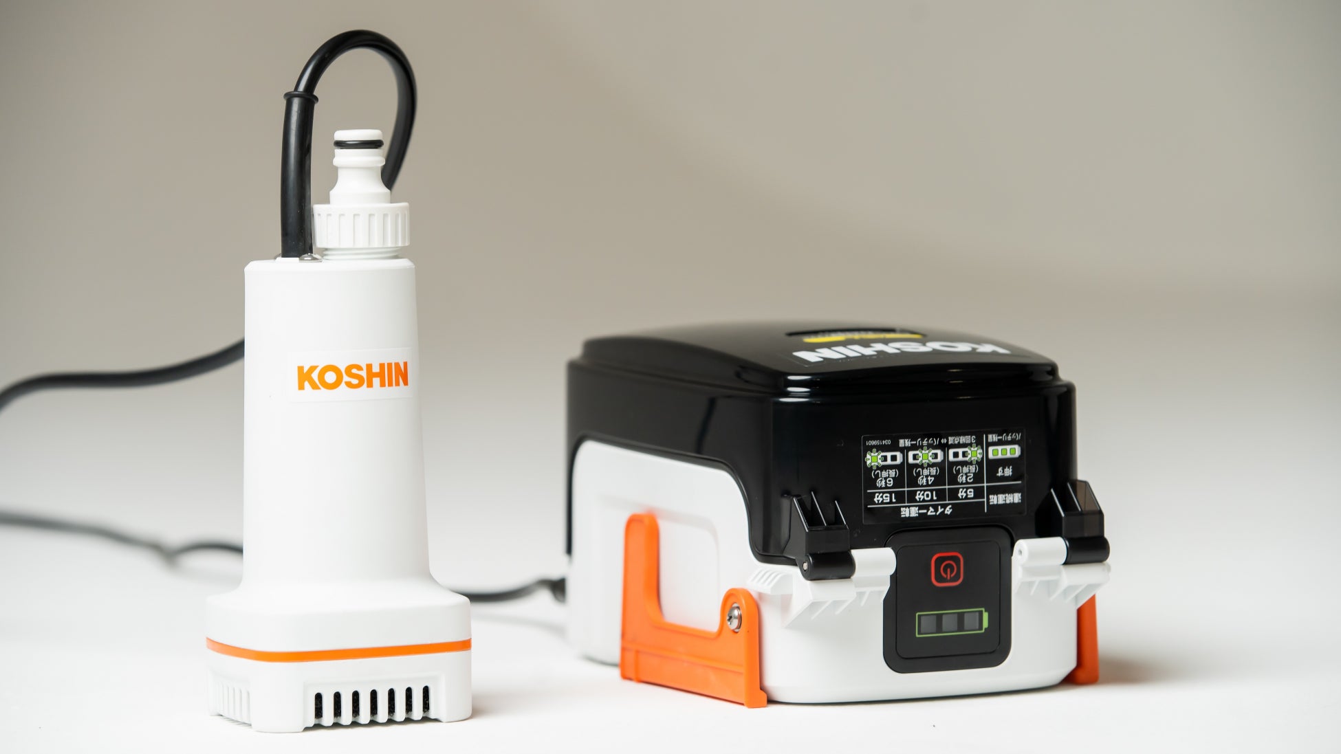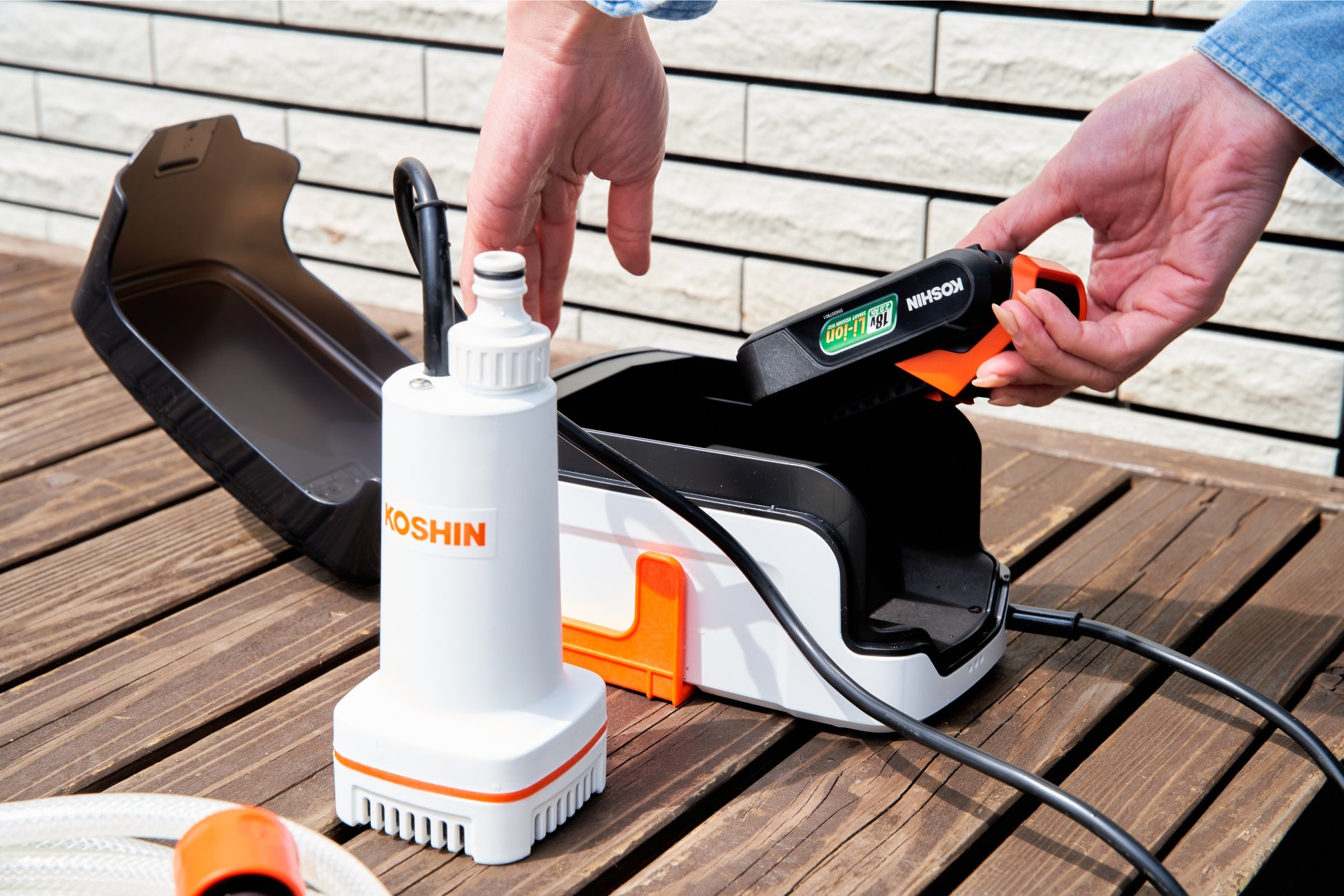 「ポンプの工進」がKOSHINが、有りそうでなかった「ポータブル 充電式 水中ポンプ」を開発致しました。