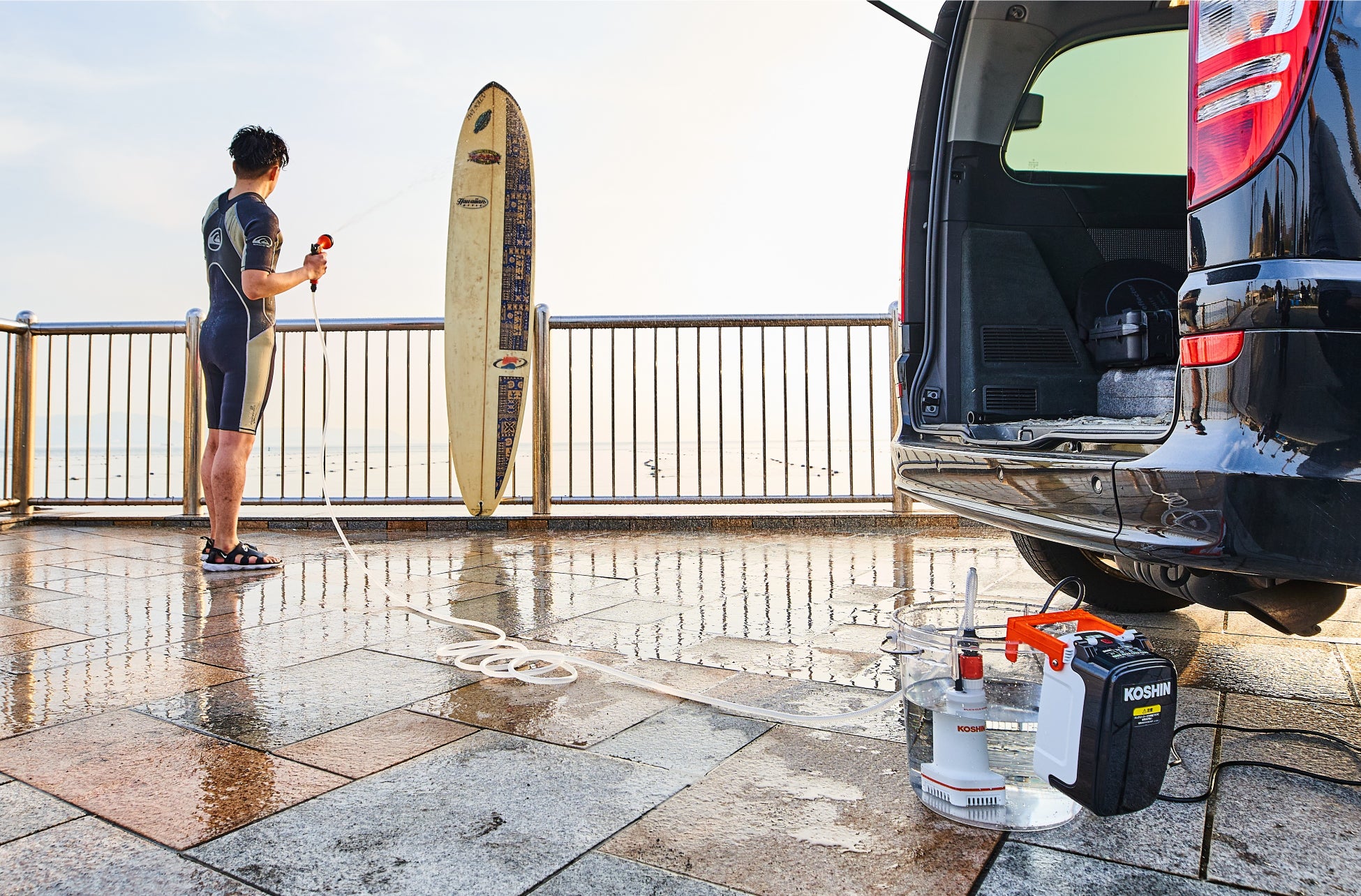 そんな時に車にコンパクト収納でき、水されあればどこでも使えるのがKOSHIN「SSP-1820」