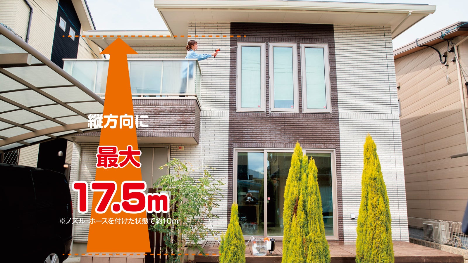 上階への給水や、外壁洗浄にも大水量で洗浄可能