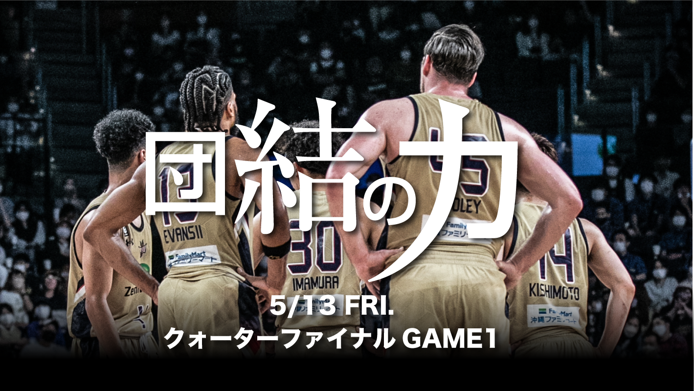 5/13(金)のクォーターファイナルGAME1から、一人でも多くのファンで沖縄アリーナを埋め尽くし、「団結の力」でキングスと共に戦いましょう。