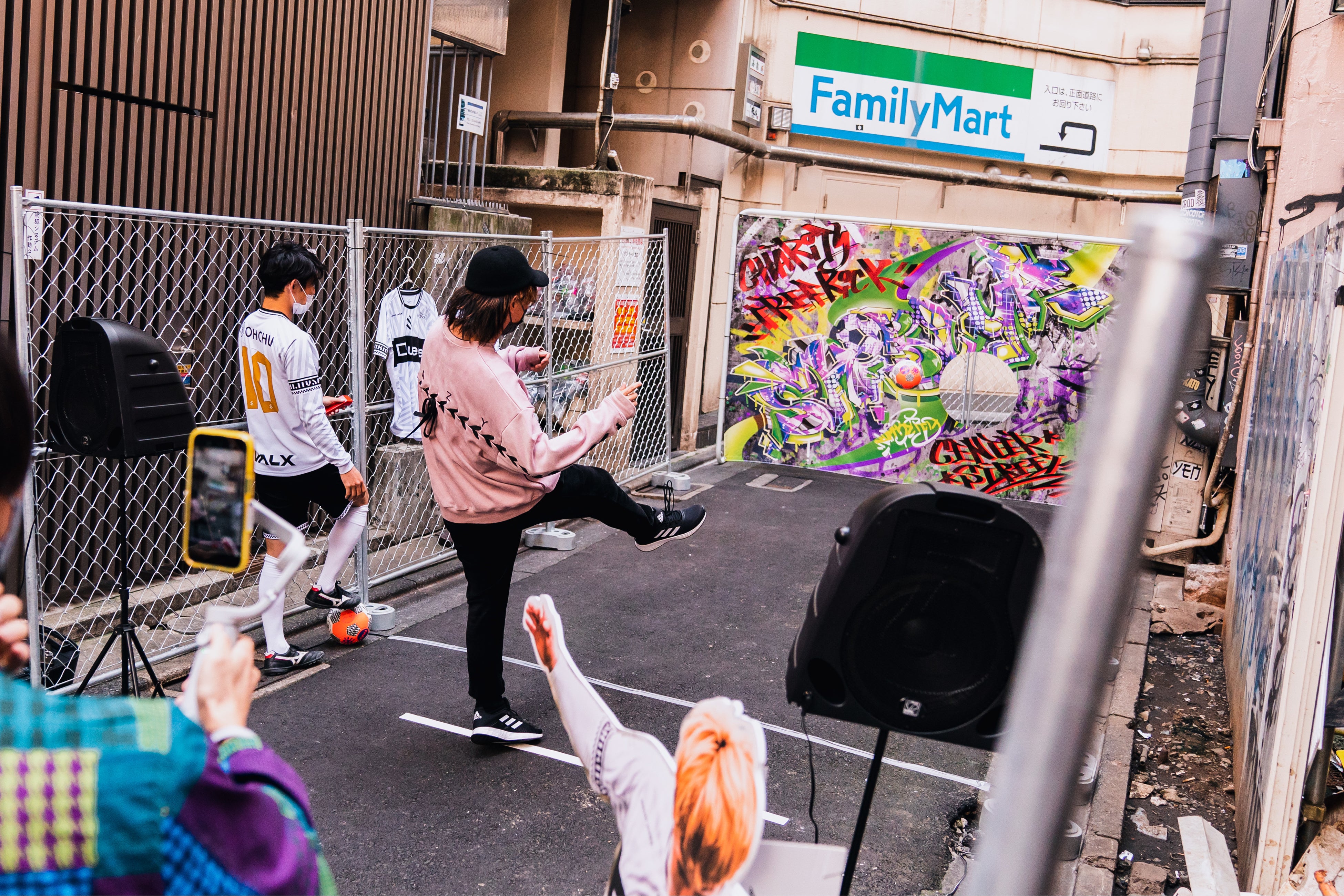 「Shibuya Center Street. Charity Free Kick」は、4月28日「渋谷の日」に合わせ、チームを、渋谷を、ソーシャルアクションをより身近感じる場をつくれないかと、両社共同主催のもと渋谷のど真ん中にある渋谷センター街 宇田川クランクストリートにて開催された、自由にフリーキックを蹴ることができるチャリティイベントです。