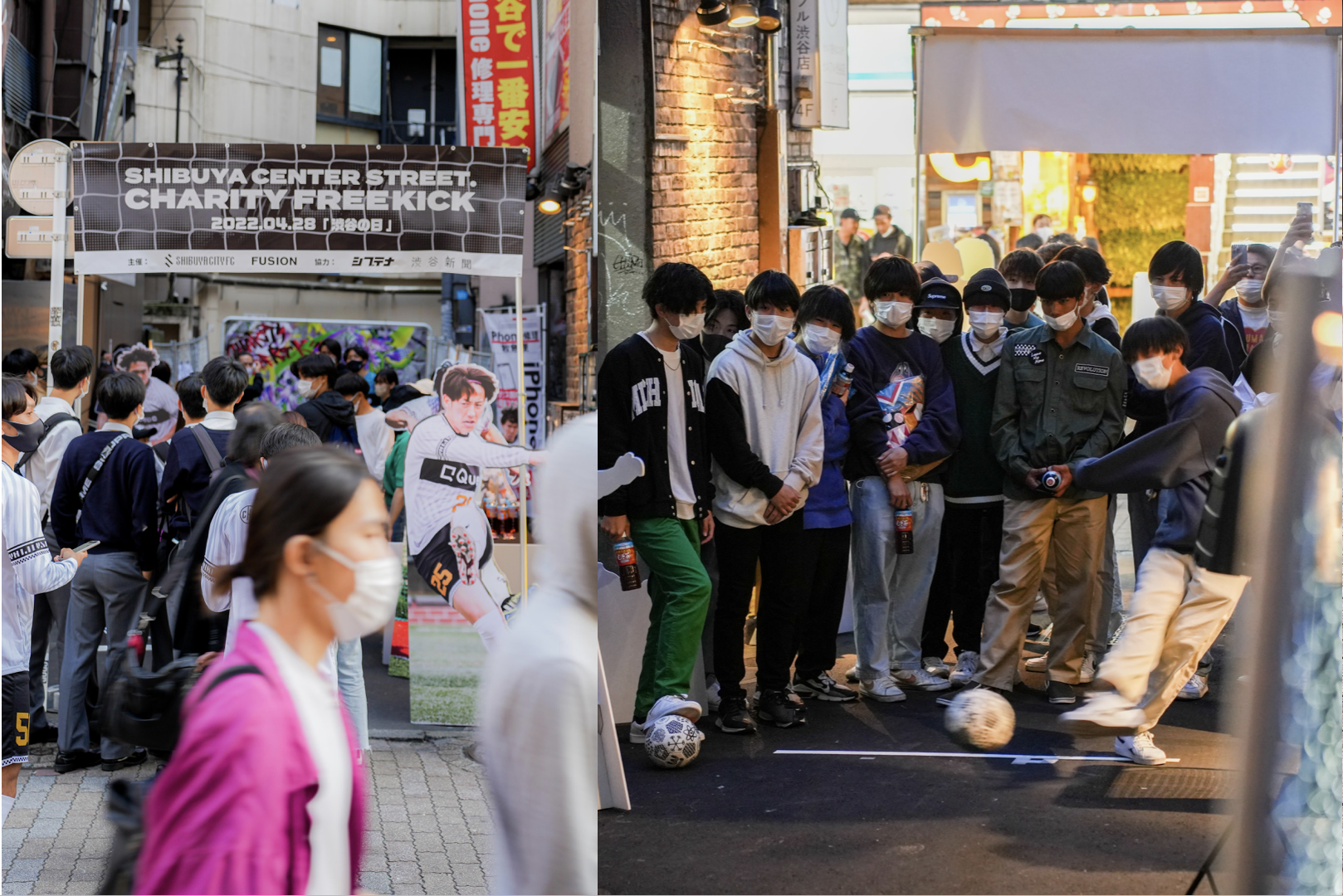 株式会社FUSIONは、4月28日「渋谷の日」に渋谷センター街でフリーキックを楽しめるチャリティイベント「Shibuya Center Street. Charity Free Kick」を、SHIBUYA CITY FCと共同で開催しました。