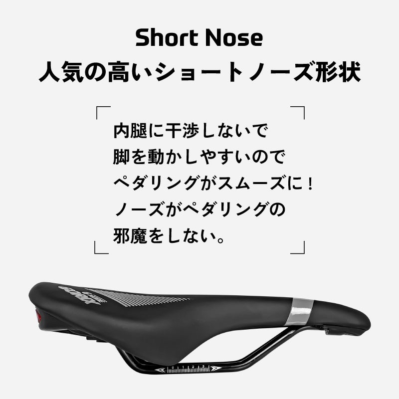 ショートノーズで内腿に干渉しないで脚を動かしやすくなっています。