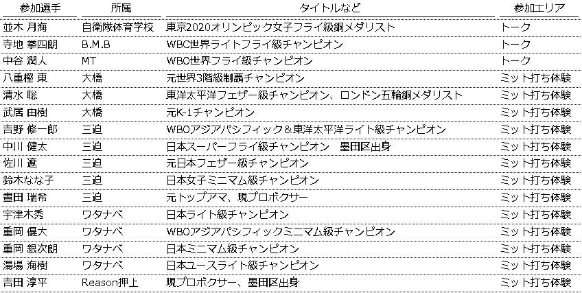 (+大学生ボクサー、墨田区スポーツボランティア、スポーツ推進委員等)