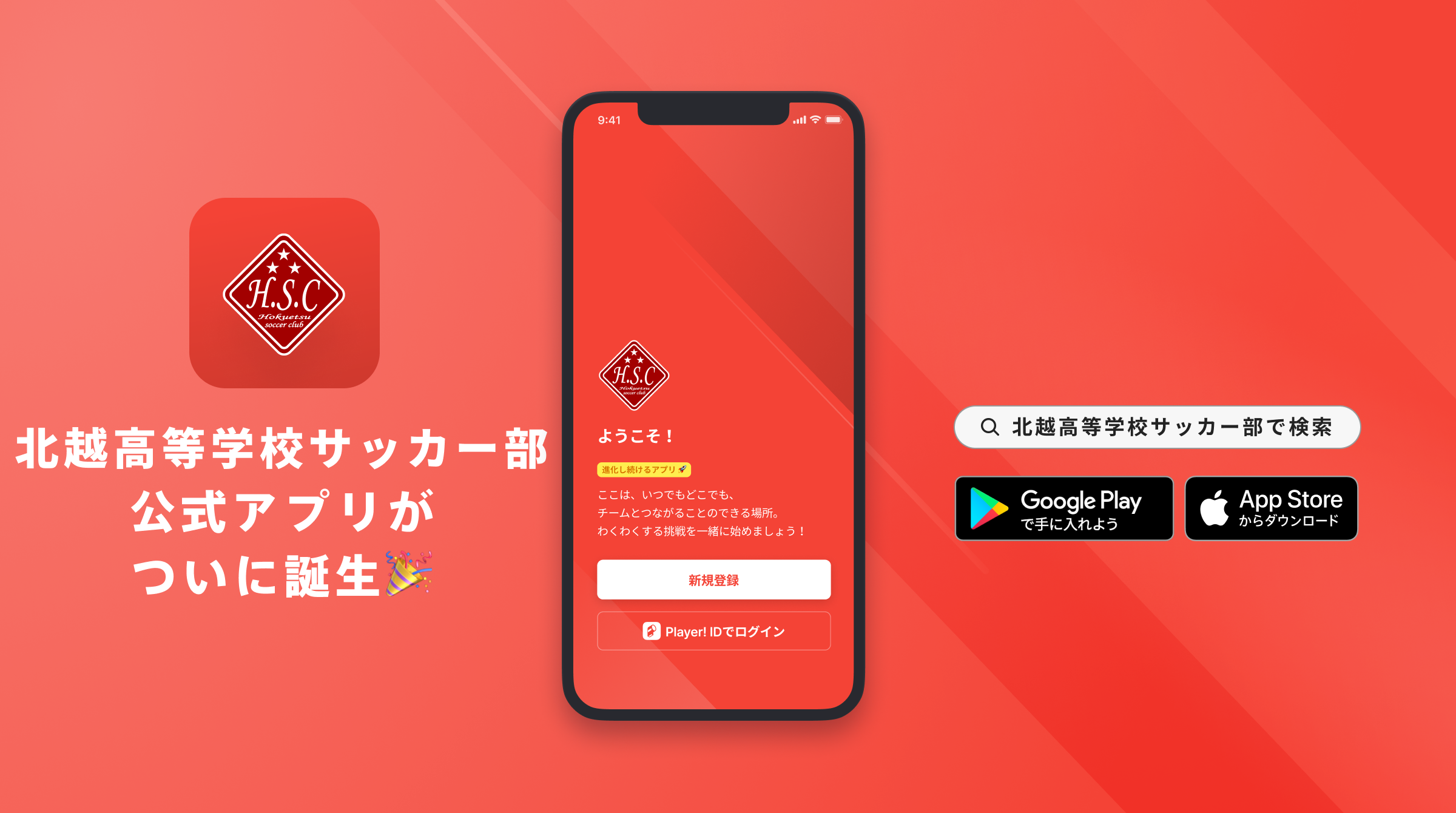 AppStoreもしくはGooglePlayで「北越高校サッカー部」と検索!