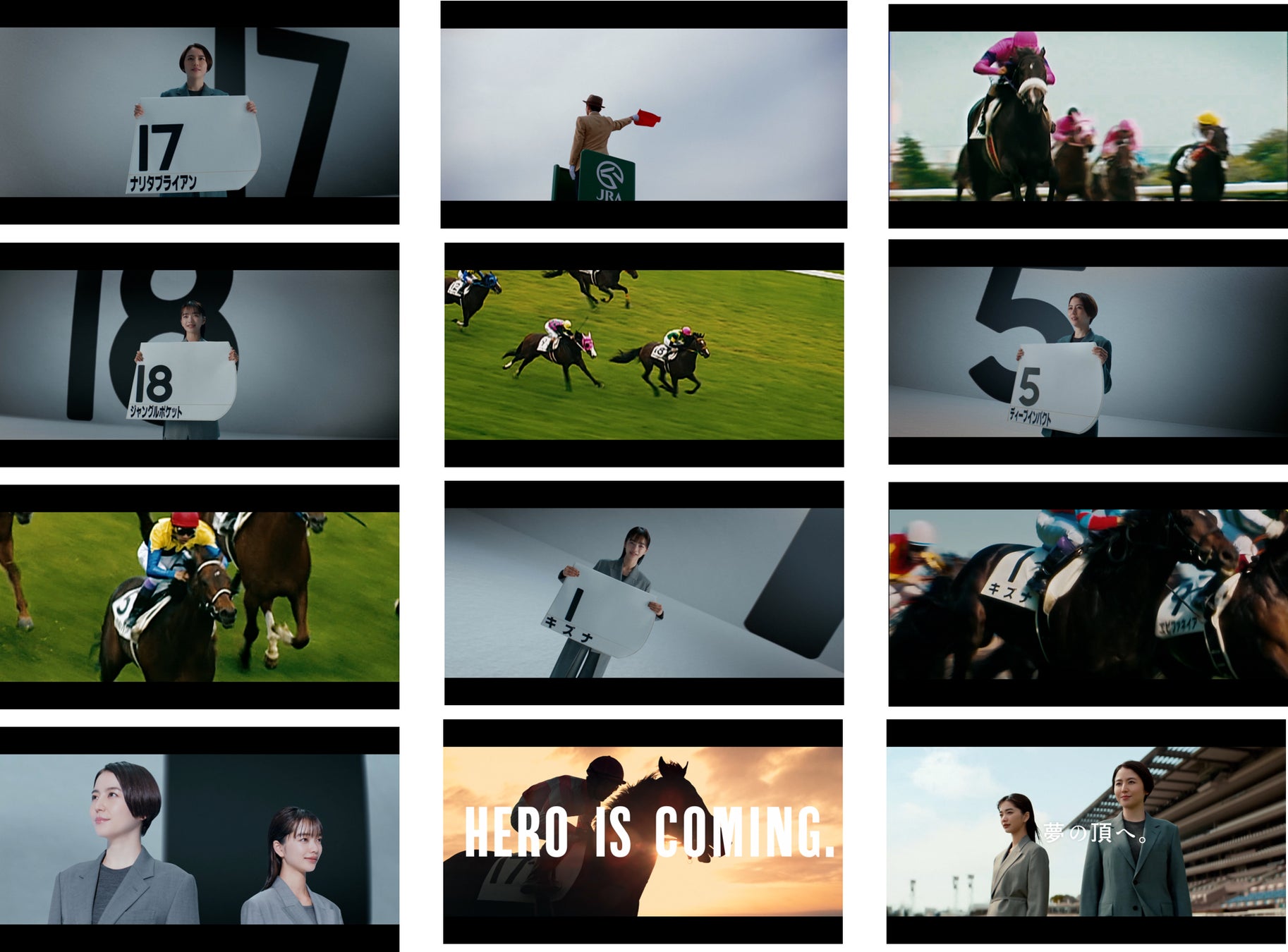 本CMでは、競馬界最高の栄誉「日本ダービー」の幾多のレースと共に、そこに描かれる誇りや期待、そして人々の思いを、ナリタブライアン…ジャングルポケット…ディープインパクト…キズナという、かつての日本ダービー優勝馬のゼッケンを掲げ、長澤まさみさん、見上愛さんが語ります。
