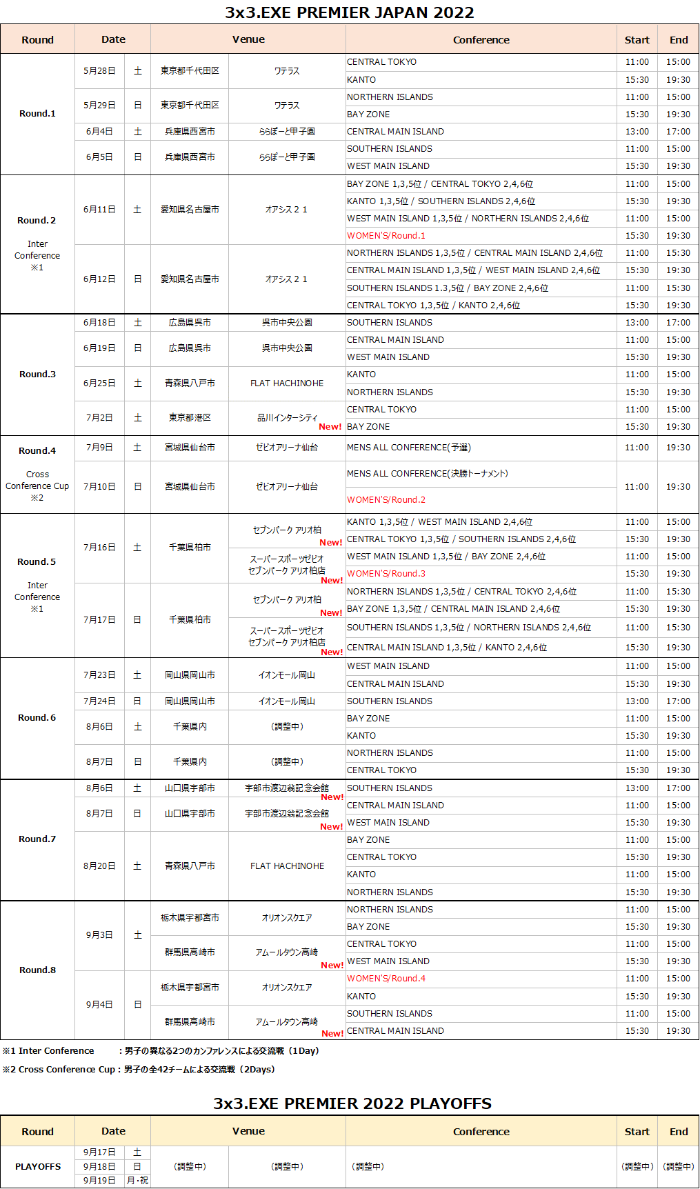 - 参考:JAPAN 2022シーズンスケジュール