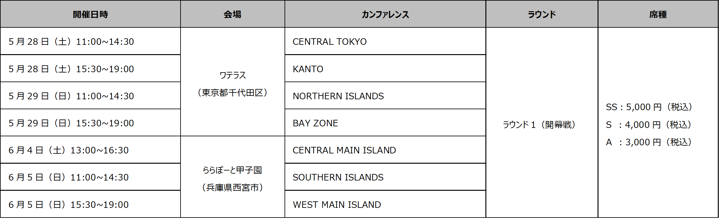 ※ラウンド2以降の観戦チケットは、各開催2週間前ごろ(予定)に販売を開始いたします。